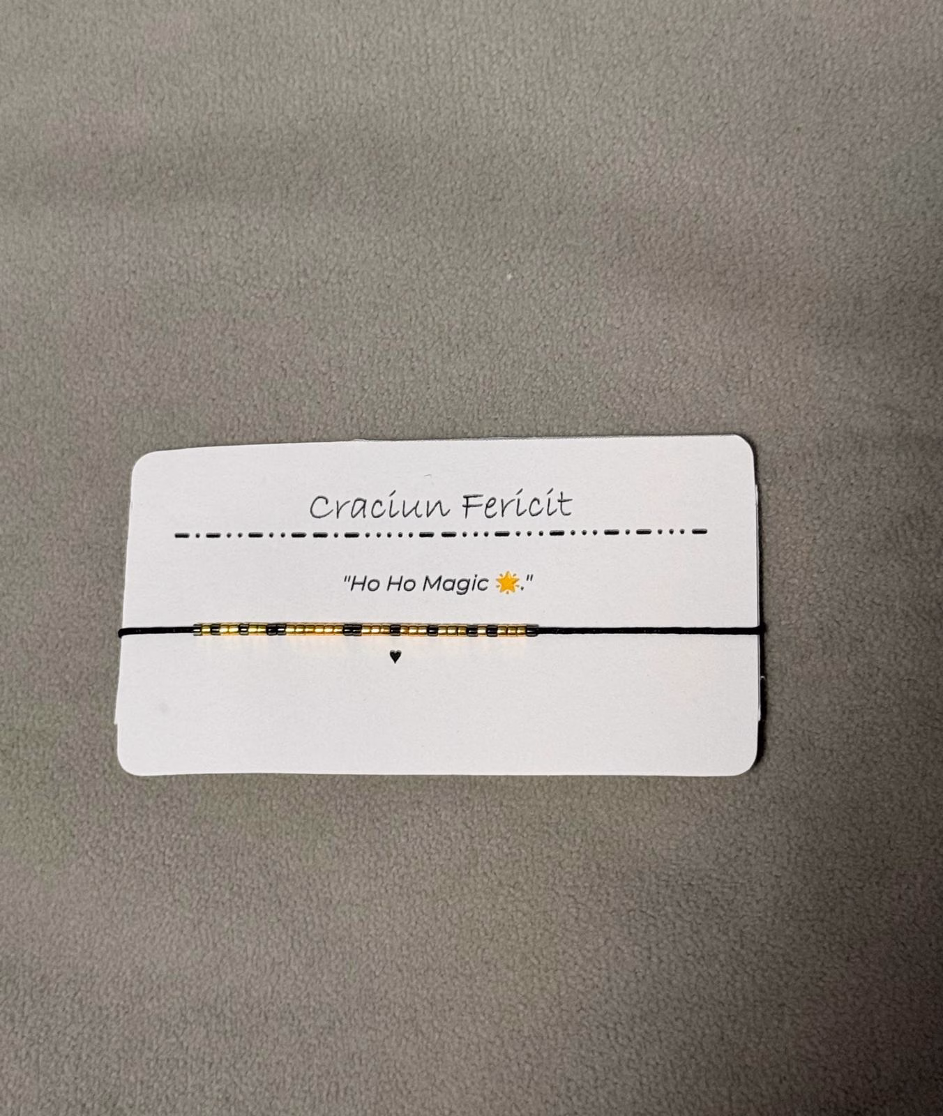 Brățară handmade cu mesajul „Crăciun Fericit 🎄” transpus discret în cod Morse – un accesoriu simbolic și elegant, perfect pentru a aduce o notă personală ținutelor de sezon. Lucrată manual cu atenție la detalii, păstrează un design minimalist potrivit pentru purtare zilnică sau pentru a fi oferită cadou. Livrată în ambalaj cadou.