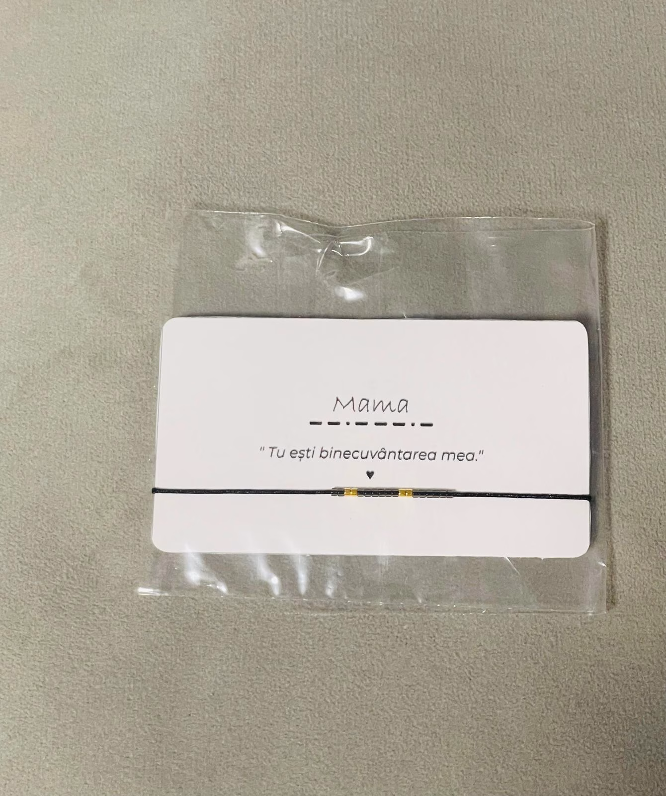 Designul brățării prezintă un mesaj special în codul Morse – “Mama” – si o declarație emoționantă “Tu esti binecuvantarea mea”. Codul Morse adaugă o dimensiune intrigantă, permițând purtătorului să poarte cu sine un secret încărcat de semnificație.
