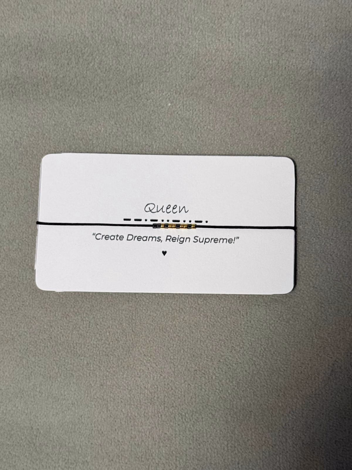Brățările de cuplu Cod Morse King & Queen sunt piese minimaliste, elegante, gândite să vă poarte povestea în fiecare zi. Fiecare brățară are un șir discret de mărgele Miyuki (negru + placate aur sau argint) care redau în cod Morse cuvintele „King” și „Queen”. Brățările sunt montate pe șnur textil negru matase (rezistent, fin la purtare) și se ajustează ușor pentru o potrivire confortabilă, atât pentru ea, cât și pentru el.