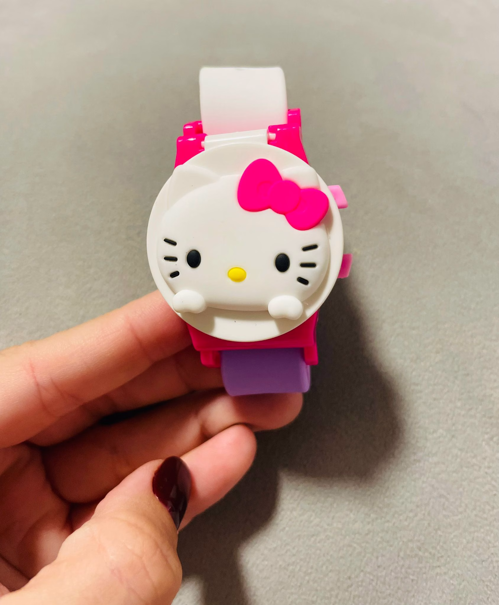 Clasicul personaj Hello Kitty, iubit de generații întregi, prinde viață pe acest ceas vesel și plin de farmec. Cu un design colorat și prietenos, ceasul Hello Kitty devine un accesoriu preferat pentru fetițe, oferindu-le un stil unic și plin de inocență. Este ideal pentru a fi purtat zi de zi, la școală sau în timpul liber, aducând mereu o notă de bucurie. Hello Kitty simbolizează prietenia și veselia, iar acest ceas este modul perfect de a oferi copiilor un obiect util și simpatic în același timp. Cu siguranță, orice fetiță care adoră Hello Kitty va fi încântată să poarte acest accesoriu special.